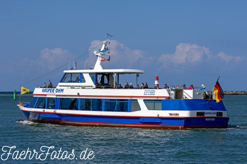00.00.2010 Registriert für Personenschifffahrt Olaf+Kathrin+Thomas Schütt und umbenannt in KASPER OHM, weiterhin Einsatz zwischen rostock und Warnemünde