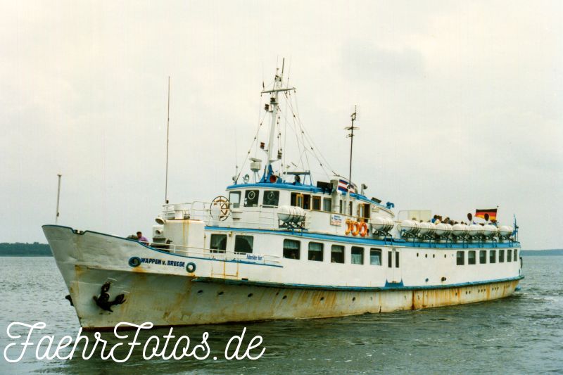 13.04.1992 Verkauf an Personenschiffahrt Rüdiger Kipp, Breege und in WAPPEN VON BREEGE umbenannt